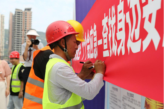 啟動(dòng)儀式上,公司黨總支副書記、總經(jīng)理馮皓代表業(yè)主單位致辭,宣布安全生產(chǎn)月活動(dòng)正式啟動(dòng)。馮皓強(qiáng)調(diào)安全生產(chǎn)對項(xiàng)目建設(shè)的重要性,要求全體人員將安全理念貫穿工作始終,積極參與各項(xiàng)安全活動(dòng)。并特別指出,張家河生態(tài)修復(fù)項(xiàng)目承載著改善區(qū)域生態(tài)環(huán)境、造福一方百姓的重要使命。作為項(xiàng)目業(yè)主,深知安全生產(chǎn)不僅是項(xiàng)目順利推進(jìn)的基石、守護(hù)建設(shè)者生命安全的防線,更是踐行社會責(zé)任、保障生態(tài)修復(fù)事業(yè)高質(zhì)量發(fā)展的核心要義。隨后,施工單位代表領(lǐng)誓,宣讀了《安全生產(chǎn)誓詞》。緊接著,參與人員在“安全生產(chǎn)月”主題橫幅上簽名,以莊重的形式明確自身安全責(zé)任。